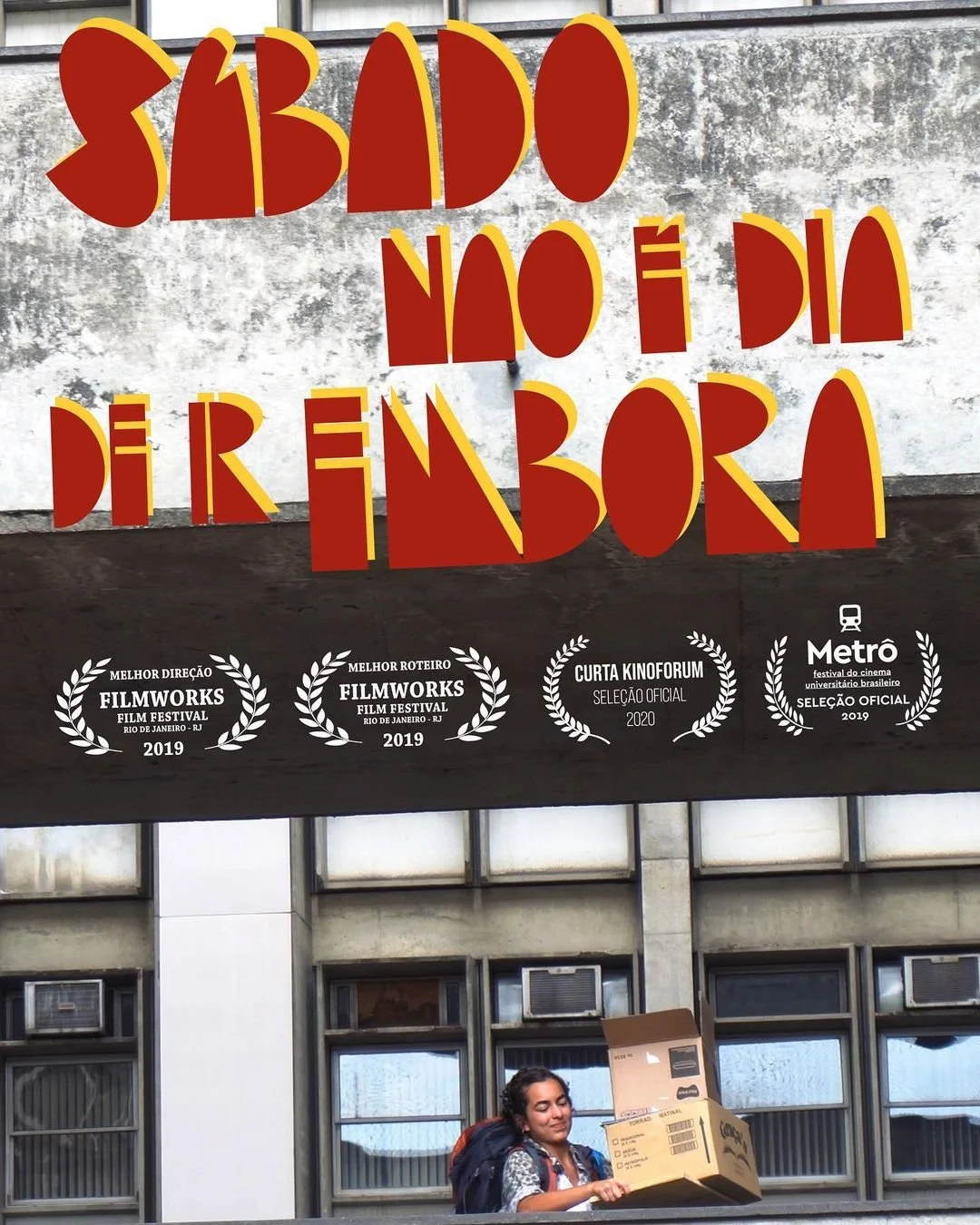 "Sábado Não é Dia de Ir Embora" conta a história de Rita, uma estudante pernambucana de Artes Visuais diretamente impactada pela greve de 2017. Ela se divide entre despedidas dos laços que criou no Rio e a fixação de resgatar seu último trabalho artístico-acadêmico que está trancado em uma sala da universidade desde o início da paralisação. Antes de pegar um ônibus para casa, Rita recuperará sua obra na UERJ com a ajuda dos melhores amigos, Clara e César.