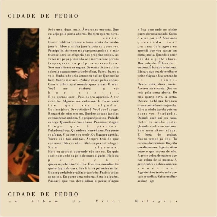Tenho muito carinho por este projeto. Foi o álbum que estreou a carreira solo do Vitinho e que tem canções muito bonitas e sinceras. Foi a minha primeira experiência como baterista para um projeto solo, sabe, de outra pessoa, e a primeira vez que gravei overdubs com percussões simples depois da bateria. Hoje, me remete a uma época muito boa e "fresca". Recém formados no colégio, iniciando a faculdade, poucas responsabilidades, com bastante tempo para criar.
